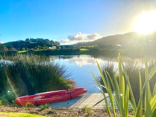 Meet Sarah — wife to Patrick, mum to two adventurous children (aged 8 and 10), and to Ziggy, their energetic dog. Their home in Mangawhai Heads is a quiet haven between bush, lake, and coastline — just a few minutes from the sand, and wrapped in birdsong and natural light. Days are filled with movement: beach swims, bushwalks, tennis rallies, and evenings spent looking out over the lake as the light begins to shift. With remote work in sustainability and software, Sarah and Patrick have shaped a rhythm that feels intentional and free — a life built around the things that matter most: family, balance, and time outdoors.